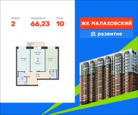 Продается 2-комнатная квартира площадью 66.23 . Квартира расположена на 10 этаже 17 этажного дома, в 201 корпусе.