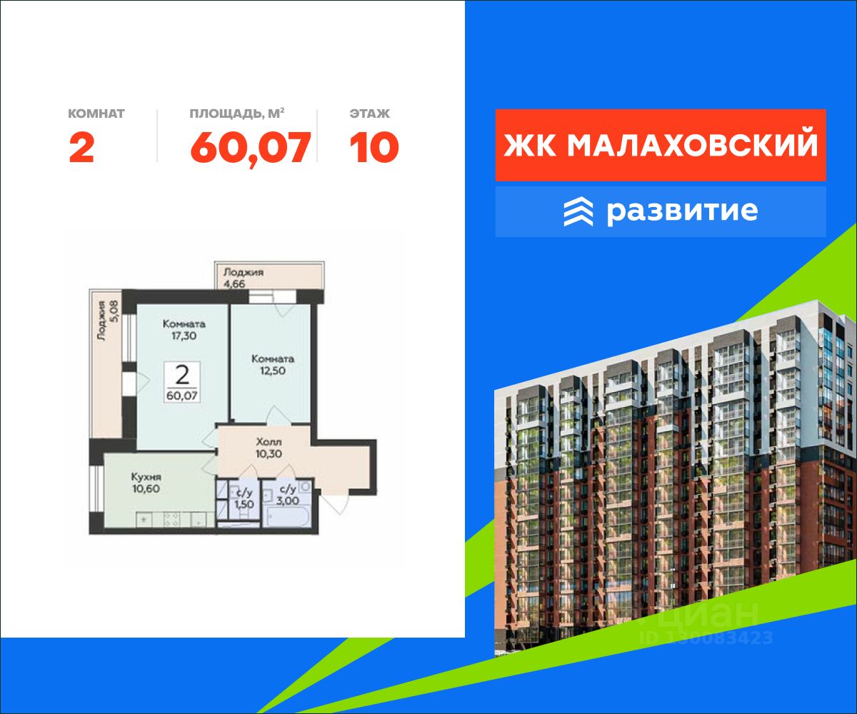 Продается 2-комнатная квартира площадью 60.07 . Квартира расположена на 10 этаже 17 этажного дома, в 201 корпусе.