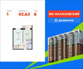 Продается 1-комнатная квартира площадью 42.63 . Квартира расположена на 8 этаже 17 этажного дома, в 201 корпусе.