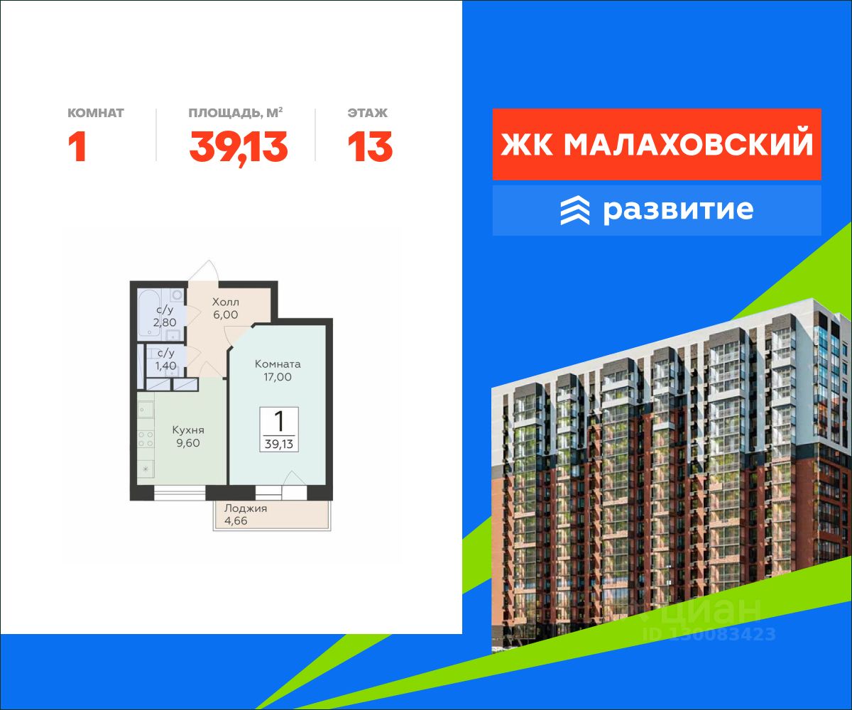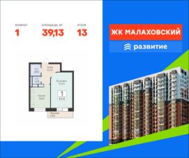 Продается 1-комнатная квартира площадью 39.13 . Квартира расположена на 13 этаже 17 этажного дома, в 201 корпусе.