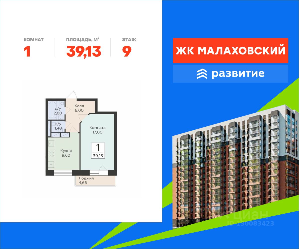 Продается 1-комнатная квартира площадью 39.13 . Квартира расположена на 9 этаже 17 этажного дома, в 201 корпусе.