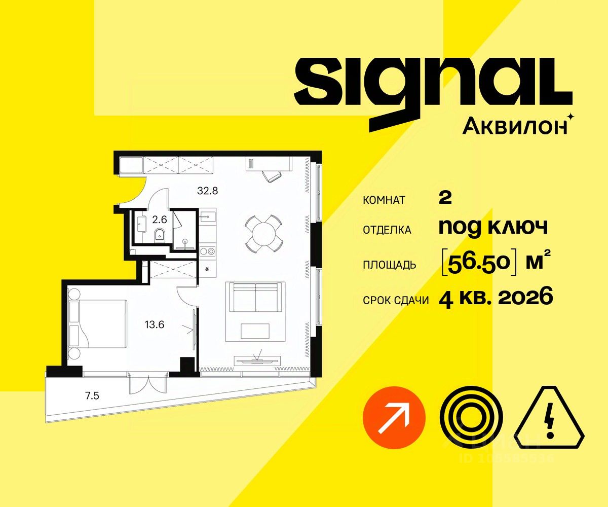 Продаются 2-комнатные апартаменты на 4 этаже 23-этажного современного апарт-комплекса Signal. Срок сдачи: 4 кв. 2026 г.