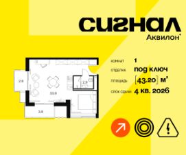 Продаются просторные апартаменты на 19 этаже 23-этажного современного апарт-комплекса Сигнал. Срок сдачи: 4 кв. 2026 г.