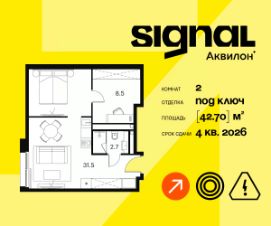 Продаются 2-комнатные апартаменты на 4 этаже 23-этажного современного апарт-комплекса Signal. Срок сдачи: 4 кв. 2026 г.
