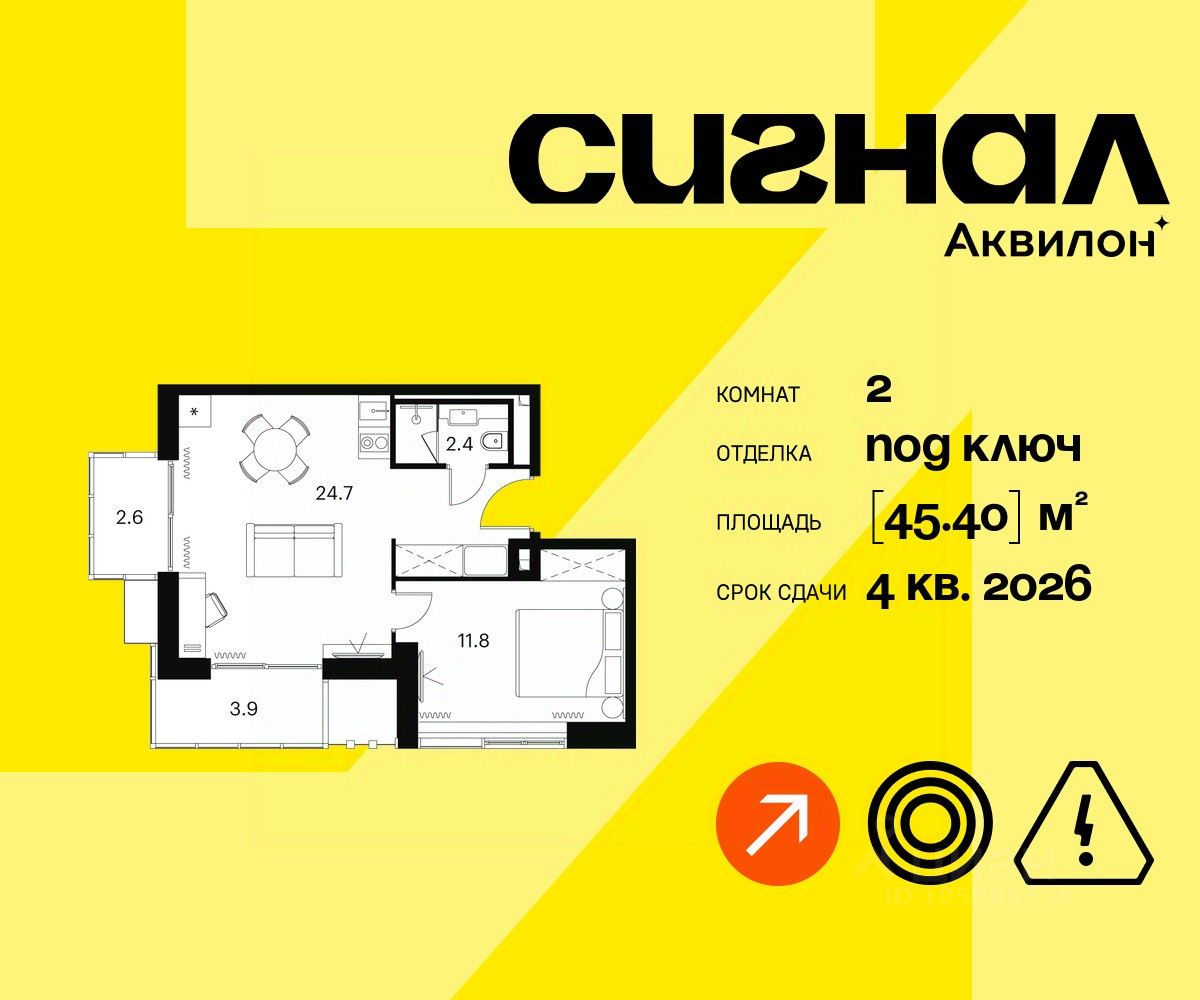 Продаются 2-комнатные апартаменты на 18 этаже 23-этажного современного апарт-комплекса Сигнал. Срок сдачи: 4 кв. 2026 г.