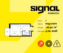 Продаются уютные однокомнатные апартаменты на 19 этаже 23-этажного современного апарт-комплекса Signal. Срок сдачи: 4 кв. 2026 г.
