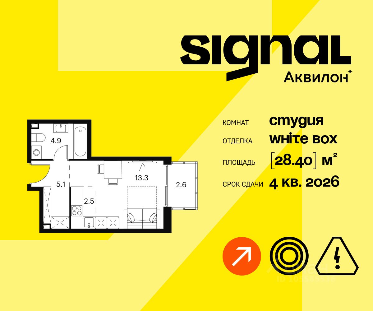 Продажа от застройщика. Продается уютная студия на 20 этаже 23-этажного современного апарт-комплекса Signal. Срок сдачи: 4 кв. 2026 г. Отделка: Апартаменты передаются в предчистовой отделке white box. Возможен заказ чистовой отделки. Мы выполним все инженерные и черновые отделочные работы, оставив вам самое приятное - создание индивидуального интерьера и неповторимого уюта. А если отпраздновать новоселье хочется как можно скорее, вы сможете заказать чистовую отделку в одном из двух цветовых вариантов: Beigestone или Greystone. Вам останется только завезти мебель и начать наслаждаться жизнью в SIGNAL. Расположение: ЖК Signal расположен на перекрестке столичных маршрутов. По Сигнальному проезду легко выехать на Алтуфьевское шоссе, СВХ и проспект Мира. Транспортная доступность: - 3 минуты пешком до станции Владыкино - 15 минут на автомобиле до ТТК - Ботанический сад в 10 минутах ходьбы Внутренняя инфраструктура Signal: - Фитнес-центр на первом этаже - Игровая площадка и приватном дворе - Коворкинг и уединенные зоны для работы - Торговая галерея Преимущества: - SoundStop - Система защиты от шума, дополнительная шумоизоляция - Система умного дома InHome 3.0 - управление домом нажатием нескольких кнопок - Система Termo-S, позволяющая сэкономить на оплате теплоснабжения - Фитнес-зал позовлит поддерживать себя в форме - Лаунж-зоны, где можно расслабиться - Лобби-бар с большим выбором напитков и закусок - Гостиничный сервис и консьерж reception 24/7 для решения бытовых задач - Апартаменты обслуживает профессиональная управляющая компания - Арт-объекты во дворах для стильного контента Signal - это дом, - чья молодость духа и бодрый настрой заряжают всех, независимо от возраста - который задает абициозную планку с самого начала карьеры - где живут интересные события и встречаются хорошие люди