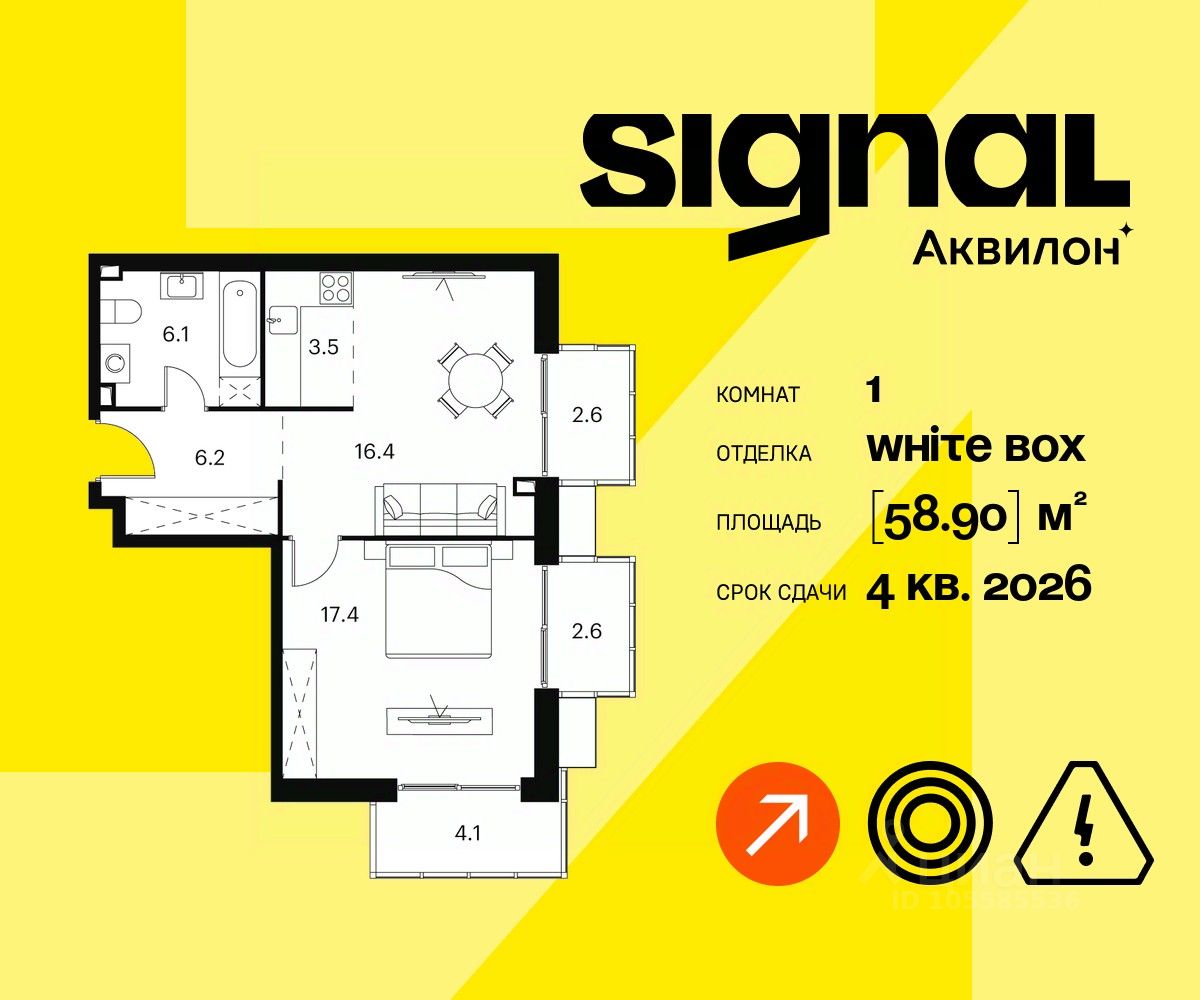 Продаются просторные апартаменты на 10 этаже 23-этажного современного апарт-комплекса Signal. Срок сдачи: 4 кв. 2026 г.