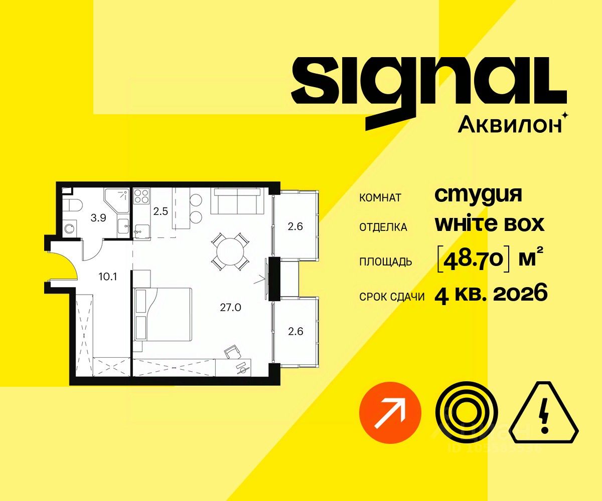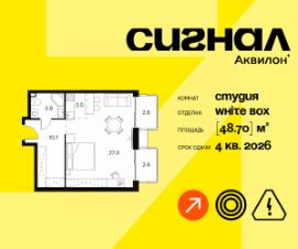 Продается просторная студия на 13 этаже 23-этажного современного апарт-комплекса Signal. Срок сдачи: 4 кв. 2026 г.