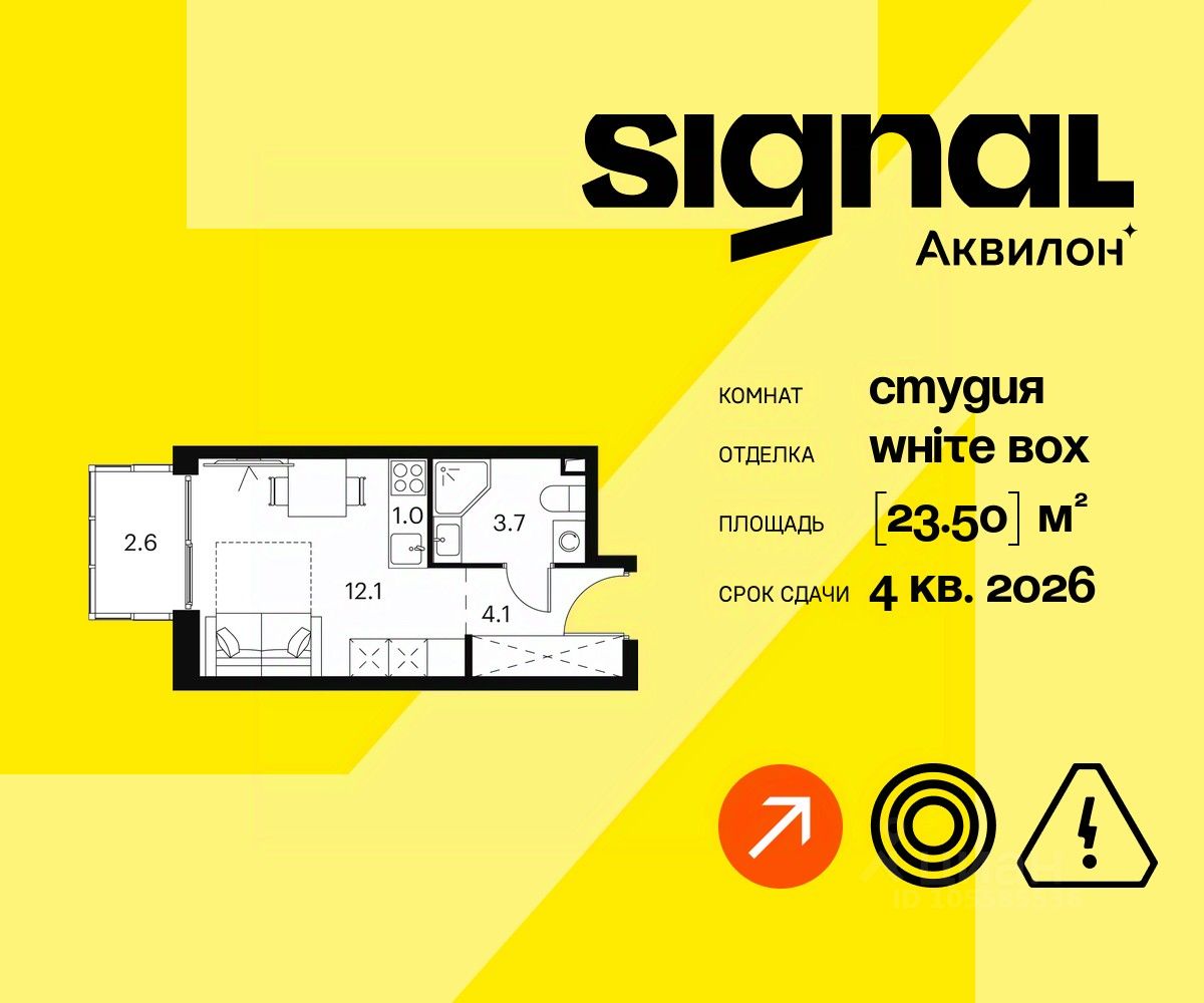 Продается уютная студия на 19 этаже 23-этажного современного апарт-комплекса Signal. Срок сдачи: 4 кв. 2026 г.
