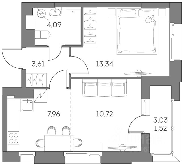 Продается уютная однокомнатная квартира на 4 этаже современного жилого комплекса Beside 2.0. Вид из окон: во двор. Срок сдачи: 2 кв. 2027 г.