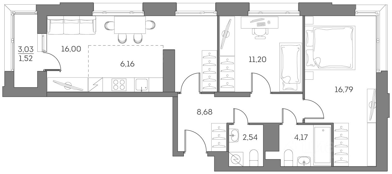 Продается просторная 2-комнатная квартира на 18 этаже современного жилого комплекса Beside 2.0. Вид из окон: на улицу. Срок сдачи: 2 кв. 2027 г.
