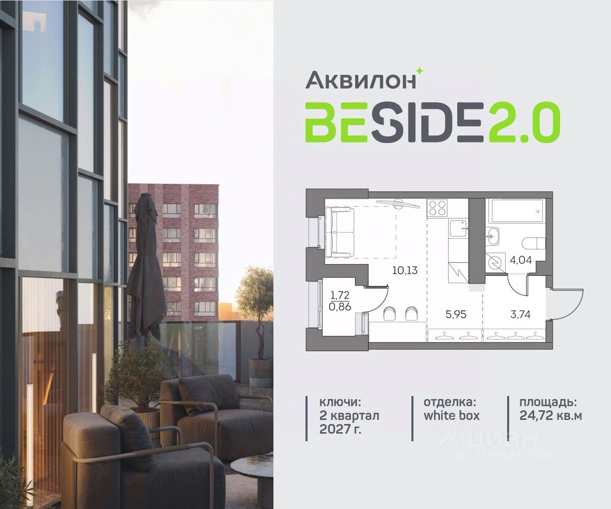 Продается просторная студия на 20 этаже современного жилого комплекса Beside 2.0. Вид из окон: на улицу. Срок сдачи: 2 кв. 2027 г.