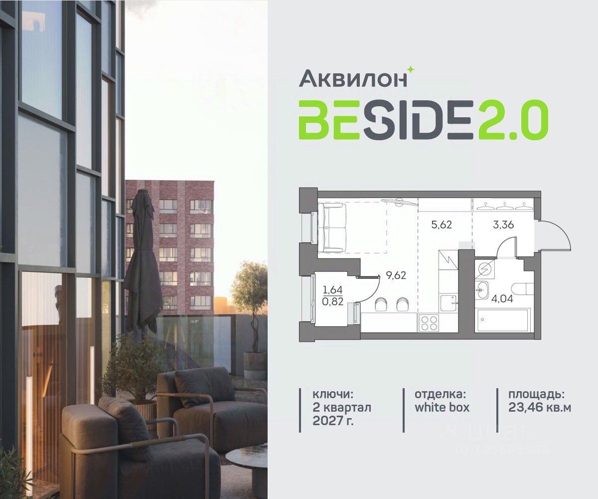Продается просторная студия на 21 этаже современного жилого комплекса Beside 2.0. Вид из окон: на улицу. Срок сдачи: 2 кв. 2027 г.