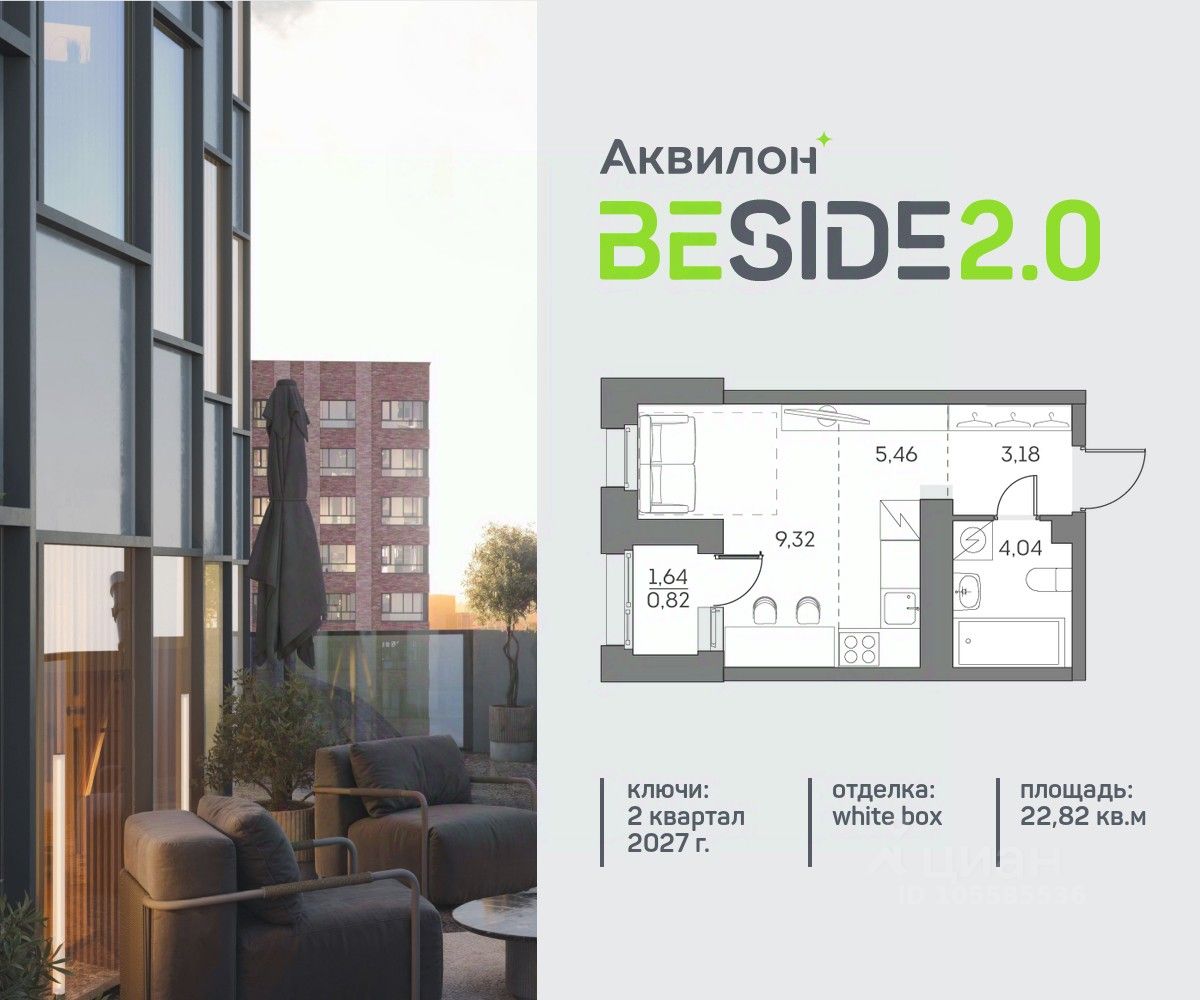 Продается просторная студия на 21 этаже современного жилого комплекса Beside 2.0. Вид из окон: на улицу. Срок сдачи: 2 кв. 2027 г.