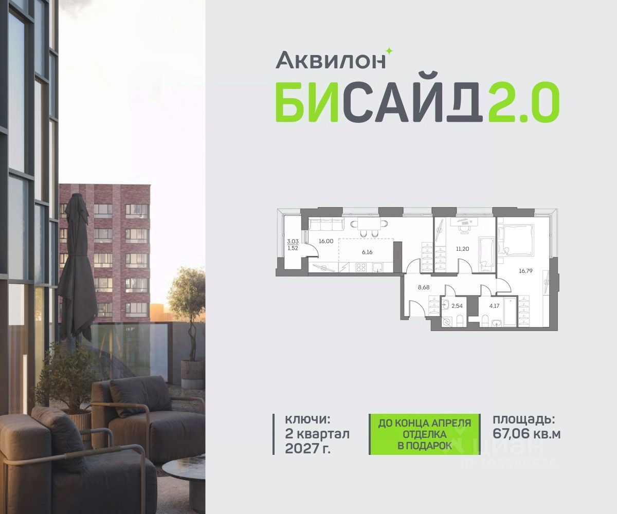 Продается просторная 2-комнатная квартира на 21 этаже современного жилого комплекса Бисайд 2.0. Вид из окон: на улицу. Срок сдачи: 2 кв. 2027 г.