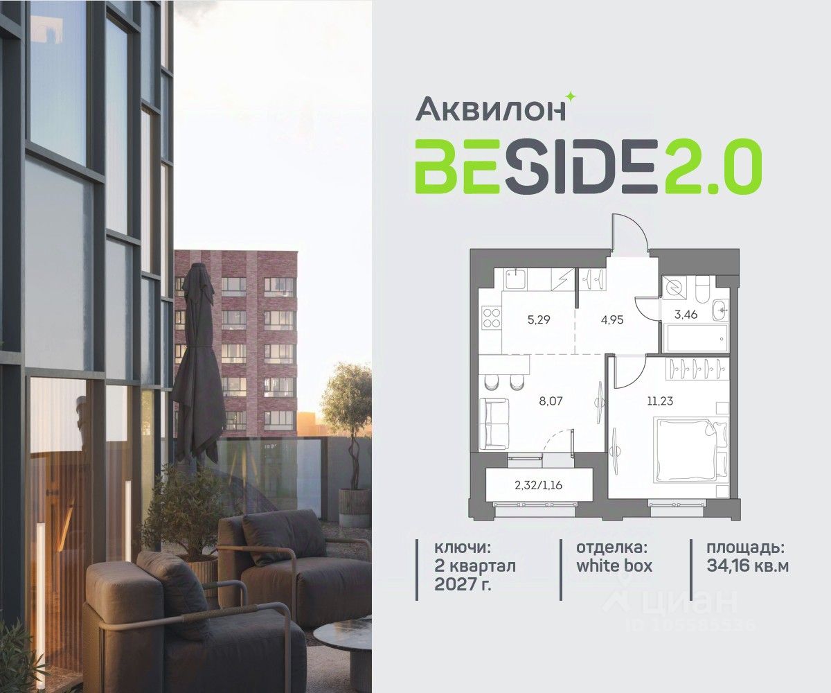 Продажа от застройщика. Продается уютная однокомнатная квартира на 7 этаже современного жилого комплекса Beside 2.0. Вид из окон: во двор. Срок сдачи: 2 кв. 2027 г. Квартира с лоджией. Отделка WhiteBox: - Вам не придется заниматься черновыми работами. - Возможность реализовать любой дизайн-проект. Расположение: В Beside 2.0 все необходимое - в шаговой доступности, не нужно тратить много времени на дорогу до работы, школы и поликлиники, походы в магазины и кинотеатры. Квартал расположен на пересечении ключевых транспортных магистралей Москвы, что позволяет быстро и легко добраться до любой нужной локации. Выбирайте наиболее подходящее занятие или попробуйте все! - Спортивные центры - Ретейл на первых этажах - Событийная площадь с амфитеатром - Дворовые площадки для активностей Транспортная доступность: - 5 минут на машине до ТТК - 7 минут на машине до Садового кольца - 7 минут пешком до станции "Нижегородская Внутренняя инфраструктура Beside 2.0: - Своя школа на 825 учеников - Просторное и светлое гранд-лобби - Коворкинг на открытом воздухе - Детский клуб Akvilon Kids - Подземный паркинг - Колясочные и велосипедные - Сити-боксы для хранения - Профессиональная управляющая компания Преимущества: - Технология энергоэффективности Termo-S, снижающая теплопотерю домов и позволяющую экономить на электроснабжении - Soundstop - технология дополнительной шумоизоляции на 39 дБ в квартирах с WhiteBox и чистовой отделкой - Система умного дома inHome 3.0 позволит контролировать коммунальные расходы, оплачивать счета и пользоваться услугами, не выходя из умного дома - Vent-In - система циркуляции воздуха в каждой комнате