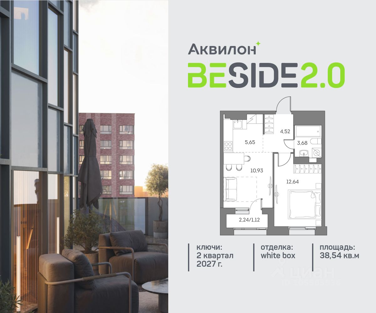 Продается уютная однокомнатная квартира на 6 этаже современного жилого комплекса Beside 2.0. Вид из окон: во двор. Срок сдачи: 2 кв. 2027 г.