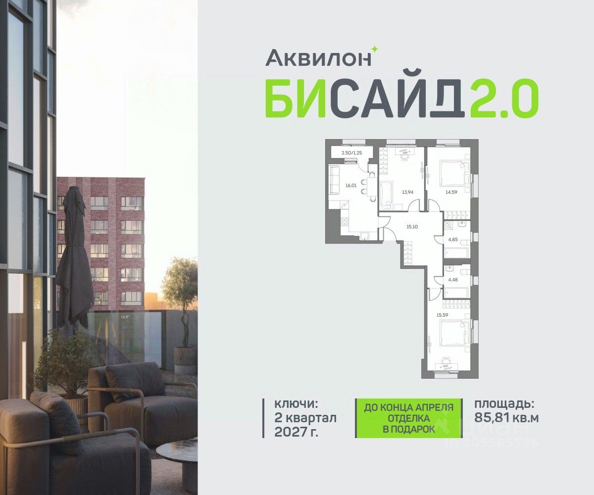 Продается просторная 3-комнатная квартира на 8 этаже современного жилого комплекса Бисайд 2.0. Вид из окон: во двор и на улицу. Срок сдачи: 2 кв. 2027 г.