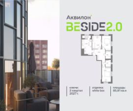 Продается просторная 3-комнатная квартира на 14 этаже современного жилого комплекса Beside 2.0. Вид из окон: во двор и на улицу. Срок сдачи: 2 кв. 2027 г.