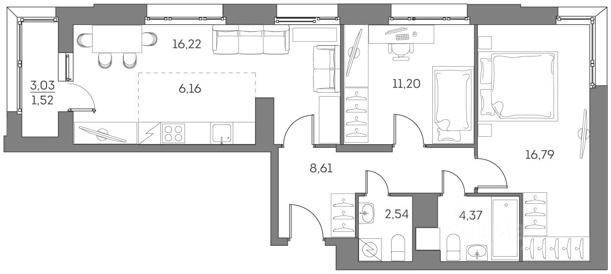 Продается просторная 2-комнатная квартира на 12 этаже современного жилого комплекса Beside 2.0. Вид из окон: на улицу. Срок сдачи: 2 кв. 2027 г.