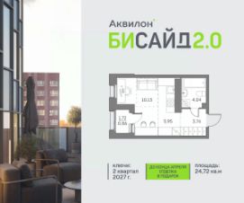 Продается просторная студия на 14 этаже современного жилого комплекса Бисайд 2.0. Вид из окон: на улицу. Срок сдачи: 2 кв. 2027 г.