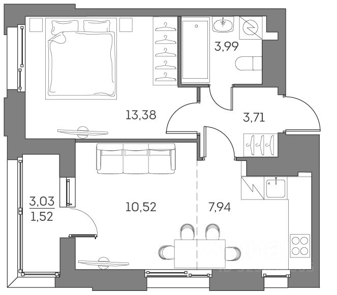Продается уютная однокомнатная квартира на 19 этаже современного жилого комплекса Beside 2.0. Вид из окон: во двор. Срок сдачи: 2 кв. 2027 г.
