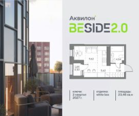 Продается просторная студия на 19 этаже современного жилого комплекса Beside 2.0. Вид из окон: на улицу. Срок сдачи: 2 кв. 2027 г.