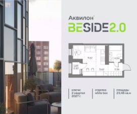 Продается просторная студия на 20 этаже современного жилого комплекса Beside 2.0. Вид из окон: на улицу. Срок сдачи: 2 кв. 2027 г.