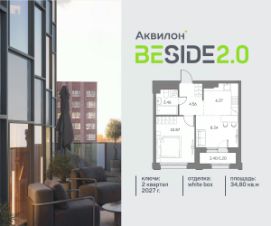 Продается уютная однокомнатная квартира на 5 этаже современного жилого комплекса Beside 2.0. Вид из окон: во двор. Срок сдачи: 2 кв. 2027 г.