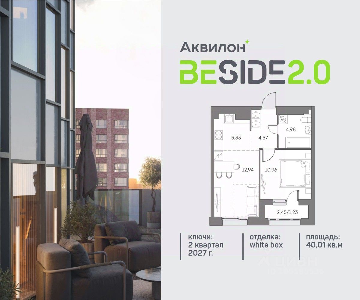 Продажа от застройщика. Продается уютная однокомнатная квартира на 12 этаже современного жилого комплекса Beside 2.0. Вид из окон: во двор. Срок сдачи: 2 кв. 2027 г. Квартира с лоджией. Отделка WhiteBox: - Вам не придется заниматься черновыми работами. - Возможность реализовать любой дизайн-проект. Расположение: В Beside 2.0 все необходимое - в шаговой доступности, не нужно тратить много времени на дорогу до работы, школы и поликлиники, походы в магазины и кинотеатры. Квартал расположен на пересечении ключевых транспортных магистралей Москвы, что позволяет быстро и легко добраться до любой нужной локации. Выбирайте наиболее подходящее занятие или попробуйте все! - Спортивные центры - Ретейл на первых этажах - Событийная площадь с амфитеатром - Дворовые площадки для активностей Транспортная доступность: - 5 минут на машине до ТТК - 7 минут на машине до Садового кольца - 7 минут пешком до станции "Нижегородская Внутренняя инфраструктура Beside 2.0: - Своя школа на 825 учеников - Просторное и светлое гранд-лобби - Коворкинг на открытом воздухе - Детский клуб Akvilon Kids - Подземный паркинг - Колясочные и велосипедные - Сити-боксы для хранения - Профессиональная управляющая компания Преимущества: - Технология энергоэффективности Termo-S, снижающая теплопотерю домов и позволяющую экономить на электроснабжении - Soundstop - технология дополнительной шумоизоляции на 39 дБ в квартирах с WhiteBox и чистовой отделкой - Система умного дома inHome 3.0 позволит контролировать коммунальные расходы, оплачивать счета и пользоваться услугами, не выходя из умного дома - Vent-In - система циркуляции воздуха в каждой комнате