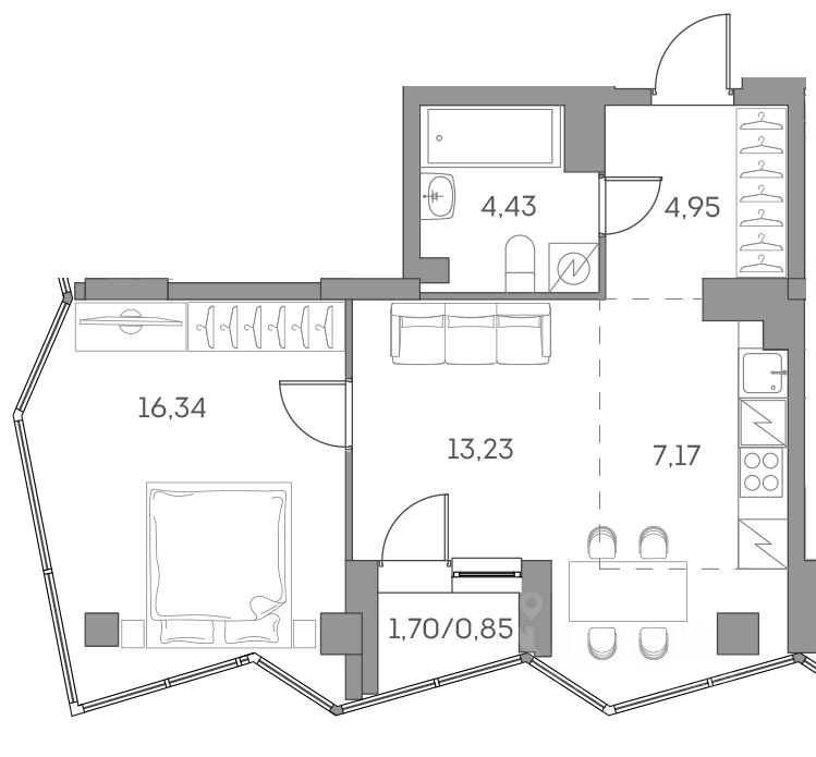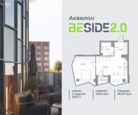 Продается уютная однокомнатная квартира на 16 этаже современного жилого комплекса Beside 2.0. Вид из окон: во двор. Срок сдачи: 2 кв. 2027 г.