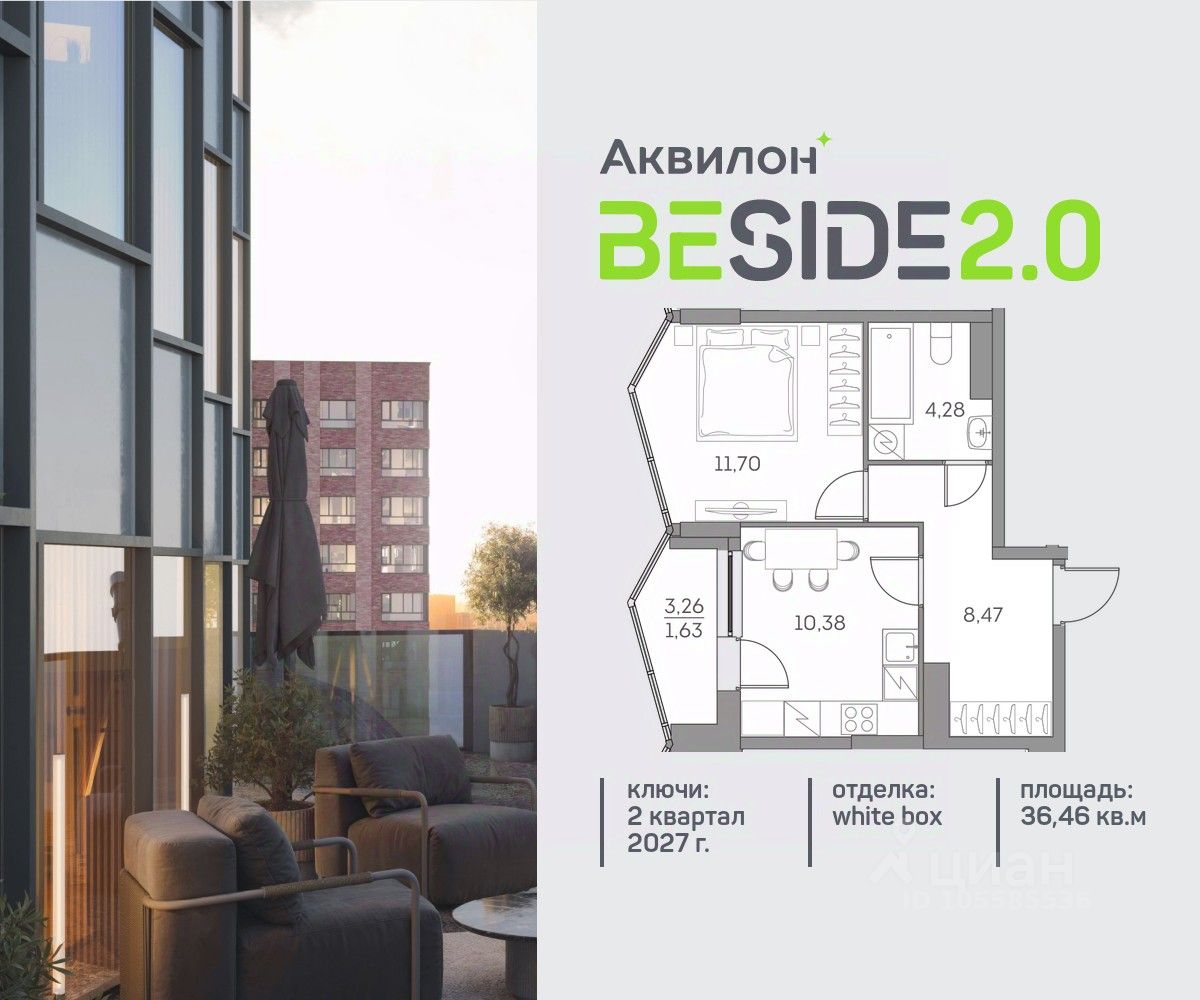 Продается уютная однокомнатная квартира на 19 этаже современного жилого комплекса Beside 2.0. Вид из окон: во двор и на улицу. Срок сдачи: 2 кв. 2027 г.