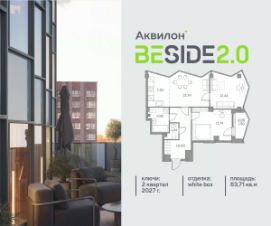 Продается просторная 2-комнатная квартира на 20 этаже современного жилого комплекса Beside 2.0. Вид из окон: на улицу. Срок сдачи: 2 кв. 2027 г.