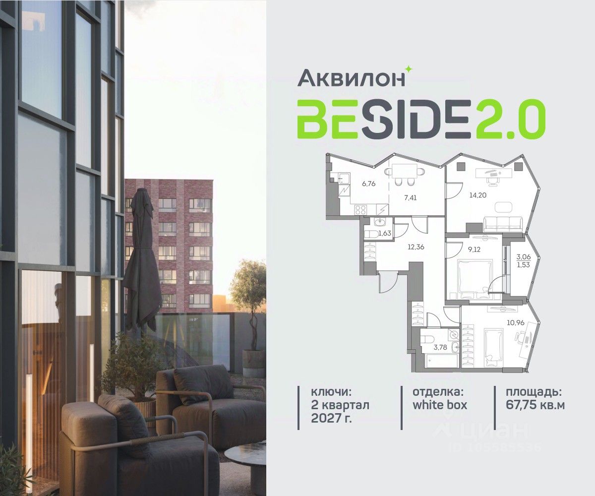 Продается просторная 3-комнатная квартира на 23 этаже современного жилого комплекса Beside 2.0. Вид из окон: на улицу. Срок сдачи: 2 кв. 2027 г.
