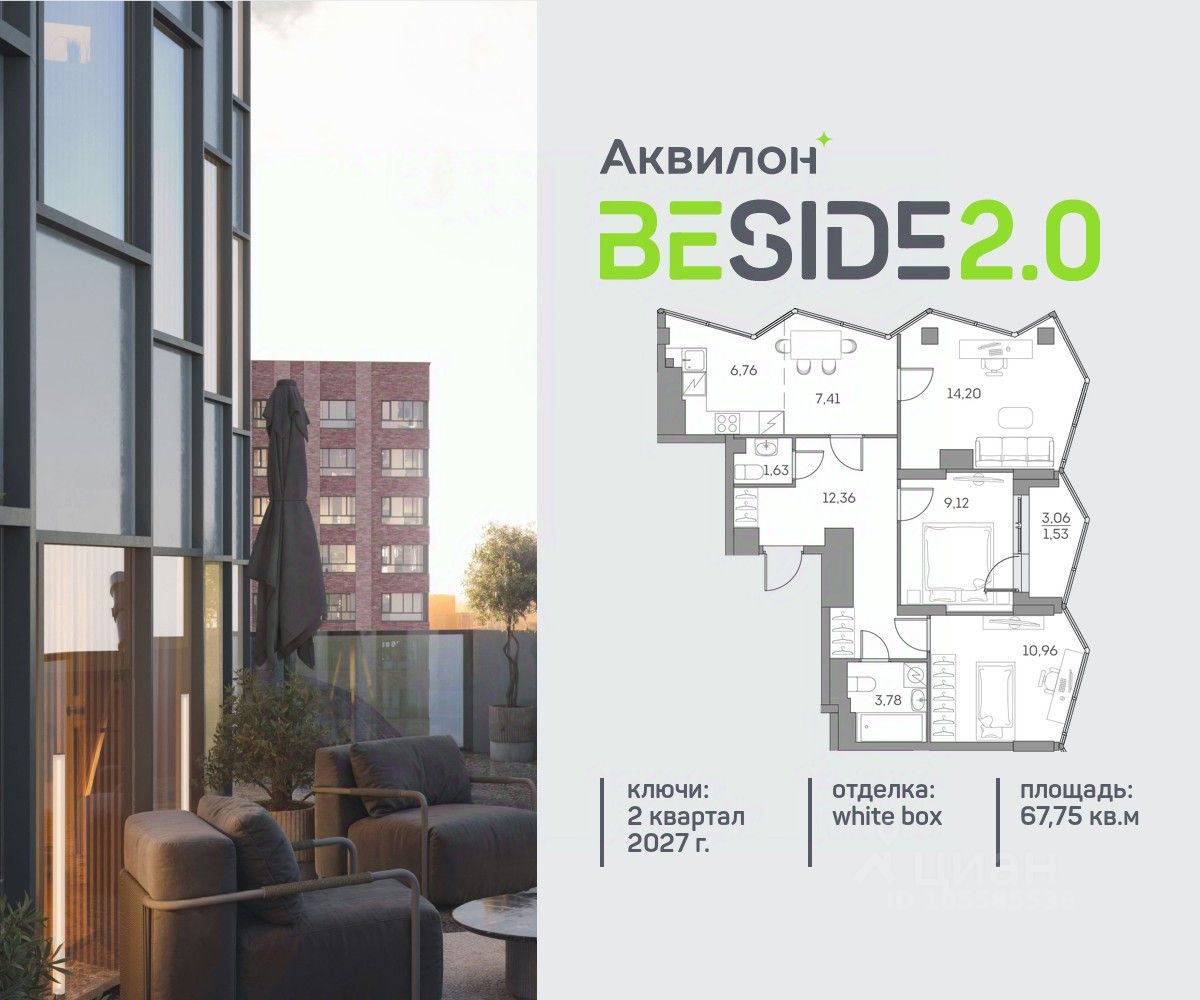 Продается просторная 3-комнатная квартира на 27 этаже современного жилого комплекса Beside 2.0. Вид из окон: на улицу. Срок сдачи: 2 кв. 2027 г.