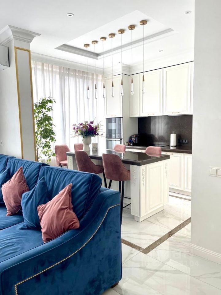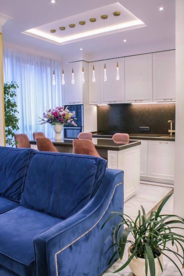 В квартире большая кухня-гостиная и 3 отдельные спальни, одна из которых со своей гардеробной.