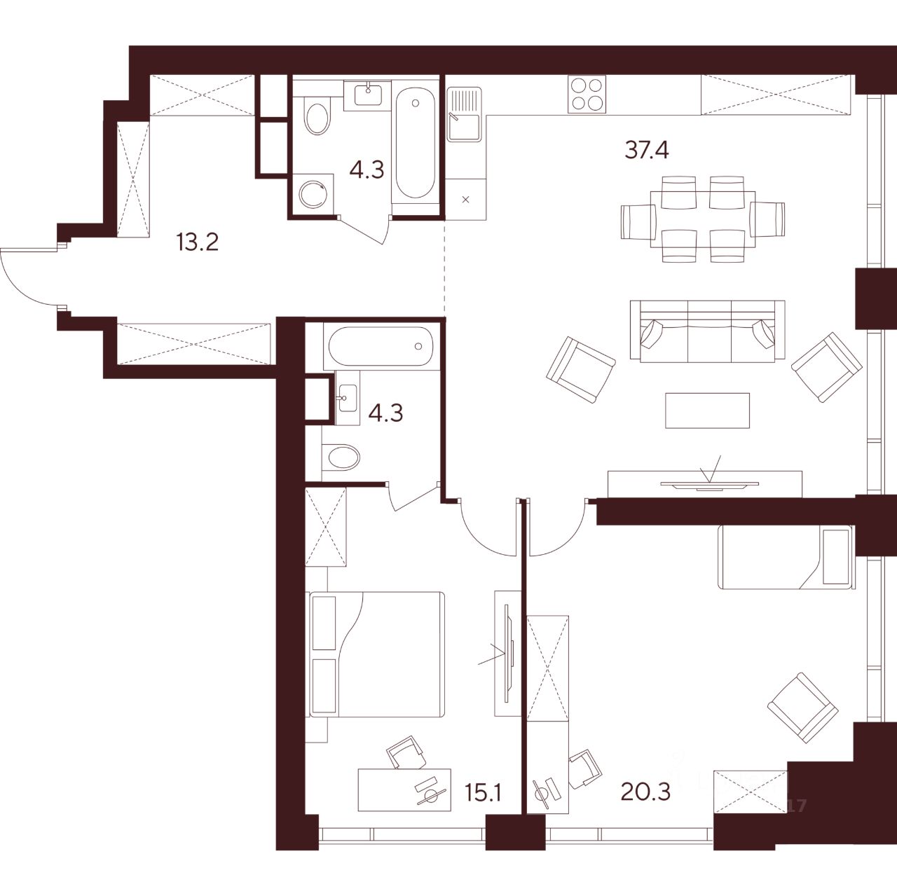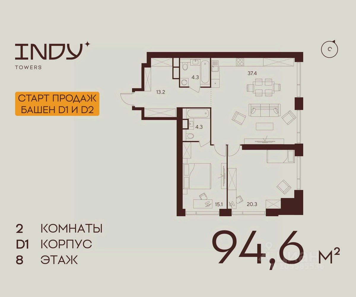 Продается просторная 2-комнатная квартира на 8 этаже жилого комплекса Indy Towers. Срок сдачи: 3 кв. 2029 г.