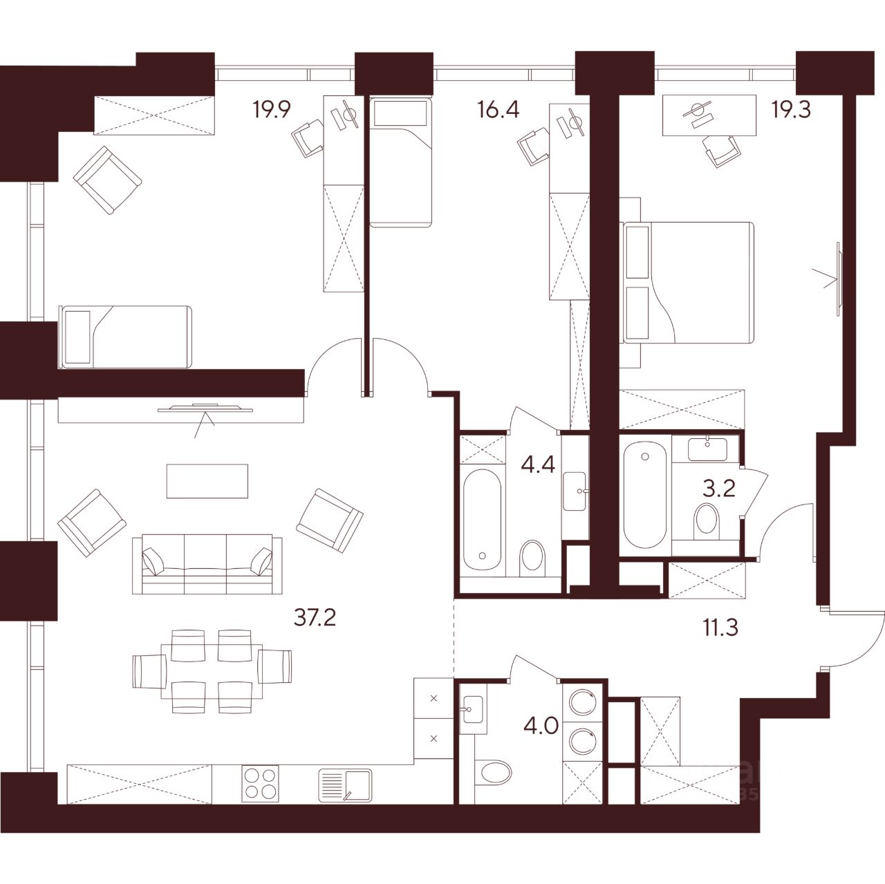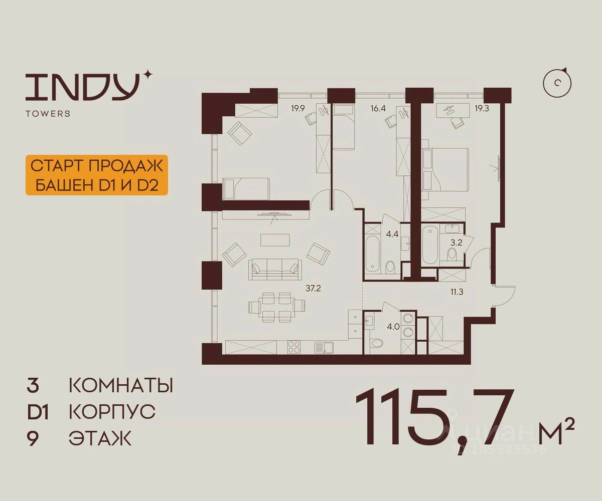 Продается просторная 3-комнатная квартира на 9 этаже жилого комплекса Indy Towers. Срок сдачи: 3 кв. 2029 г.