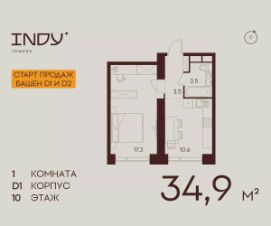 Продается уютная однокомнатная квартира на 10 этаже жилого комплекса Indy Towers. Срок сдачи: 3 кв. 2029 г.