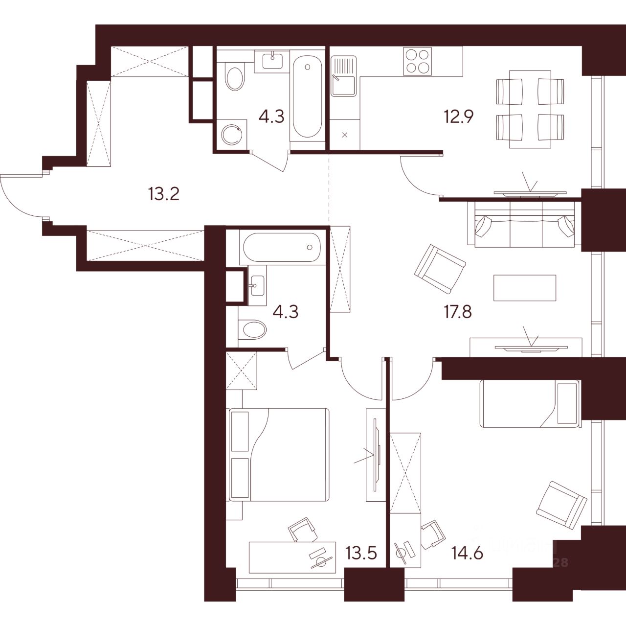Продажа от застройщика. Продается просторная 3-комнатная квартира на 11 этаже жилого комплекса Indy Towers. Срок сдачи: 3 кв. 2029 г. Расположение: Комплекс расположен в Хорошевском районе Москвы, на улице Куусенина, в окружении почти 150 гектаров парков для прогулок и активного отдыха. Помимо этого, рядом с комплексом есть: - Детская международная академия тенниса - Ледовый спортивный комплекс ЦСКА - Футбольный стадион "ВЭБ-Арена" - Крупнейший в Европе торовый центр "Авиапарк" - Богатый выбор государственных и частных школ - 8 парков, окружающих комплекс Транспортная доступность: - 3 минут до метро Зорге - 2 минуты пешком до парка Березовая роща - 10 минут на машине до ТТК - 8 минут на машине до ТРЦ Авиапарк Внутренняя инфраструктура Indy Towers: - Кафе и продуктовые магазины - Тайский SPA - Фитнес зал - Комьюнити-зона - Детский клуб Аквилон KIDS - Детский сад Преимущества: - Технология энергоэффективности Termo-S, снижающая теплопотерю домов и позволяющую экономить на электроснабжении - Soundstop - технология дополнительной шумоизоляции на 39 дБ в квартирах с WhiteBox и чистовой отделкой - Система умного дома inHome 3.0 позволит контролировать коммунальные расходы, оплачивать счета и пользоваться услугами, не выходя из умного дома