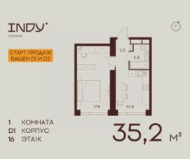 Продается уютная однокомнатная квартира на 16 этаже жилого комплекса Indy Towers. Срок сдачи: 3 кв. 2029 г.