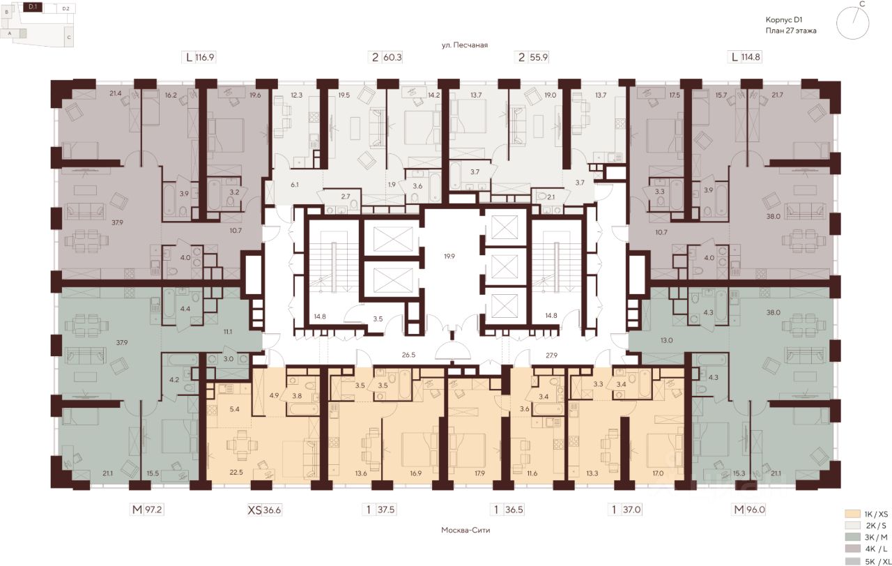 Продается просторная 2-комнатная квартира на 27 этаже жилого комплекса Indy Towers. Срок сдачи: 3 кв. 2029 г.