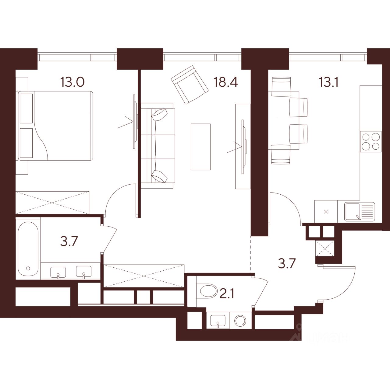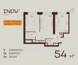 Продается 2-комнатная квартира на 29 этаже жилого комплекса Indy Towers. Срок сдачи: 3 кв. 2029 г.