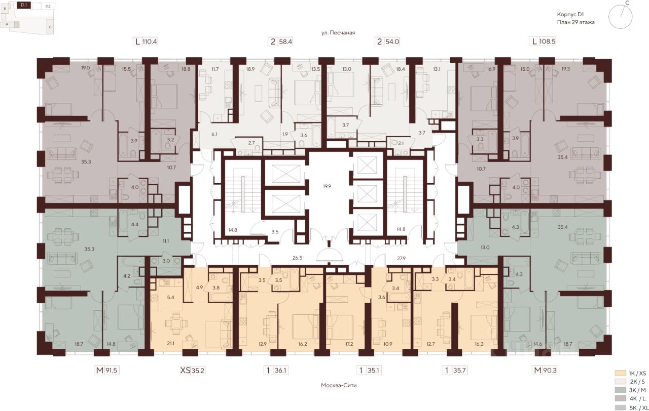 Продается просторная студия на 29 этаже жилого комплекса Indy Towers. Срок сдачи: 3 кв. 2029 г.