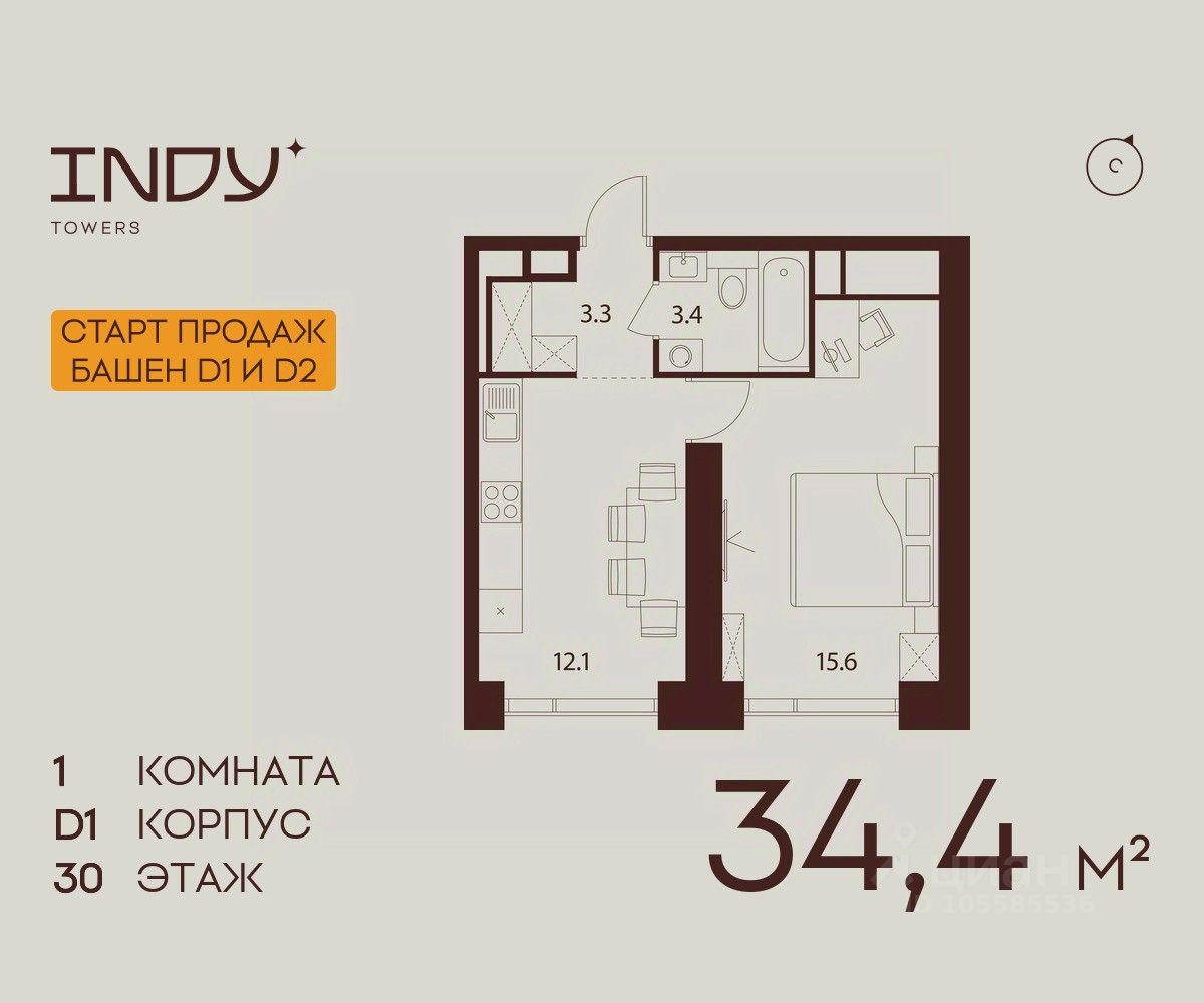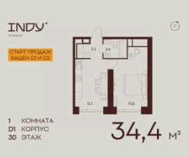 Продается уютная однокомнатная квартира на 30 этаже жилого комплекса Indy Towers. Срок сдачи: 3 кв. 2029 г.