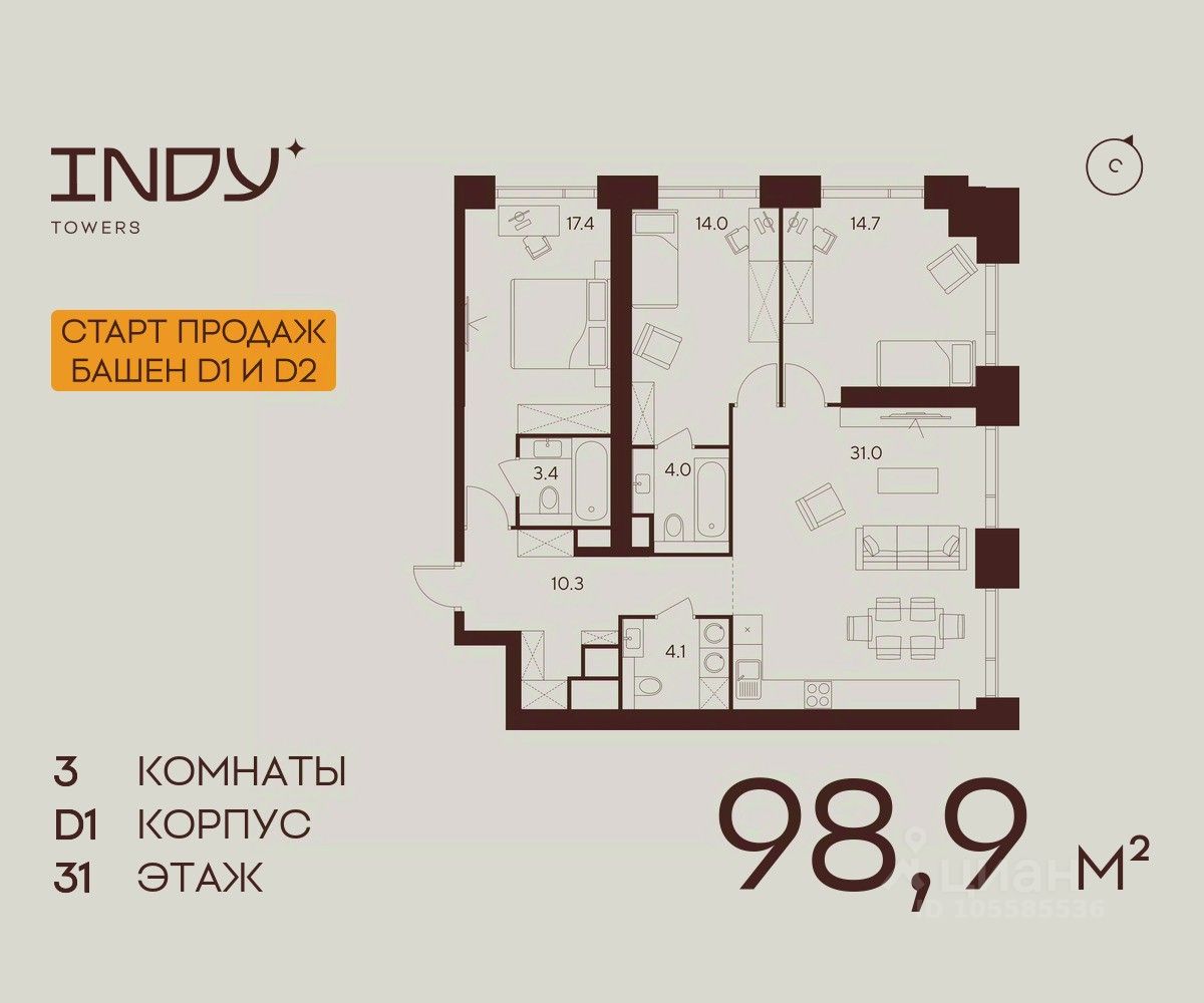 Продажа от застройщика. Продается просторная 3-комнатная квартира на 31 этаже жилого комплекса Indy Towers. Срок сдачи: 3 кв. 2029 г. Расположение: Комплекс расположен в Хорошевском районе Москвы, на улице Куусенина, в окружении почти 150 гектаров парков для прогулок и активного отдыха. Помимо этого, рядом с комплексом есть: - Детская международная академия тенниса - Ледовый спортивный комплекс ЦСКА - Футбольный стадион "ВЭБ-Арена" - Крупнейший в Европе торовый центр "Авиапарк" - Богатый выбор государственных и частных школ - 8 парков, окружающих комплекс Транспортная доступность: - 3 минут до метро Зорге - 2 минуты пешком до парка Березовая роща - 10 минут на машине до ТТК - 8 минут на машине до ТРЦ Авиапарк Внутренняя инфраструктура Indy Towers: - Кафе и продуктовые магазины - Тайский SPA - Фитнес зал - Комьюнити-зона - Детский клуб Аквилон KIDS - Детский сад Преимущества: - Технология энергоэффективности Termo-S, снижающая теплопотерю домов и позволяющую экономить на электроснабжении - Soundstop - технология дополнительной шумоизоляции на 39 дБ в квартирах с WhiteBox и чистовой отделкой - Система умного дома inHome 3.0 позволит контролировать коммунальные расходы, оплачивать счета и пользоваться услугами, не выходя из умного дома