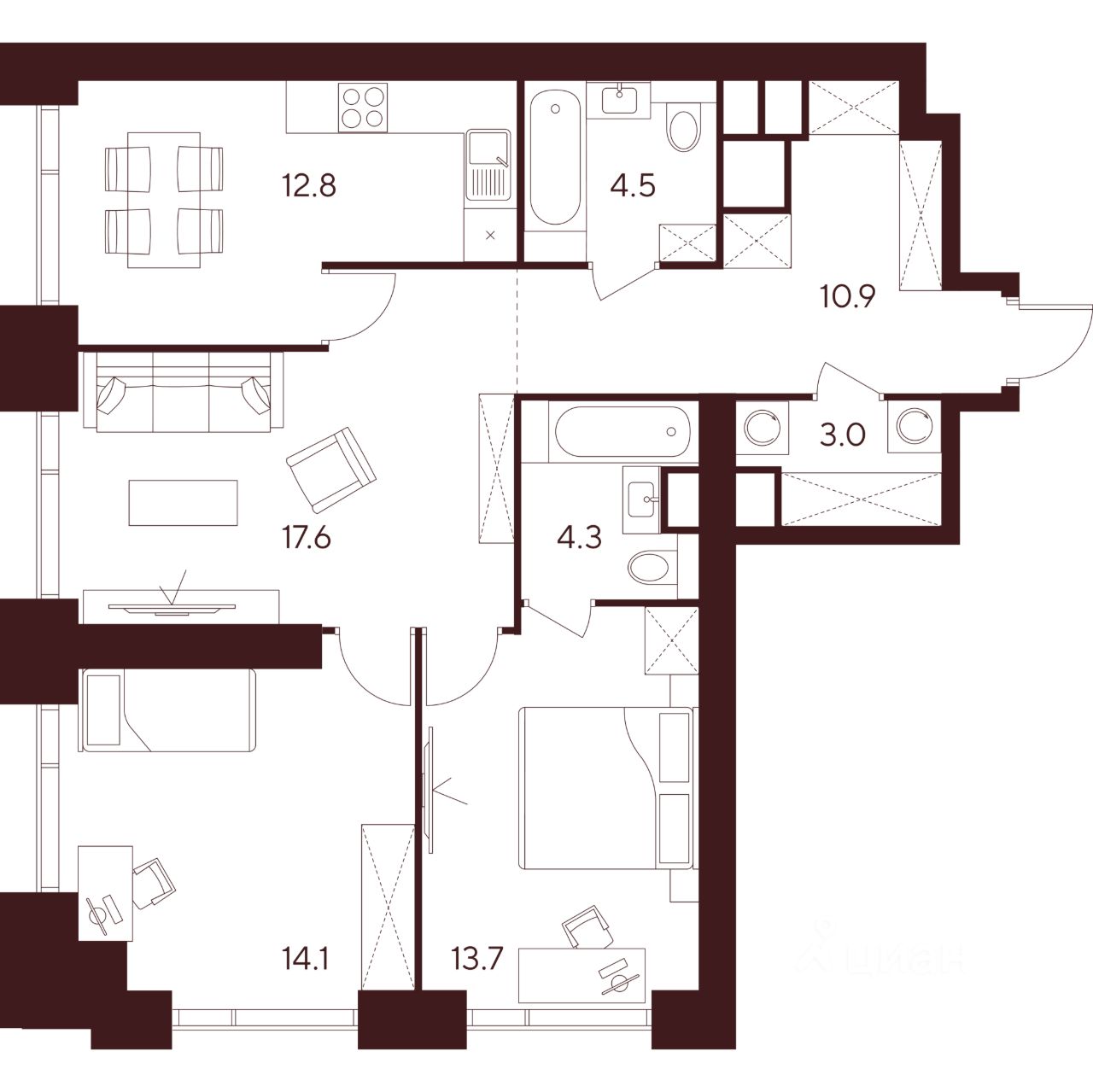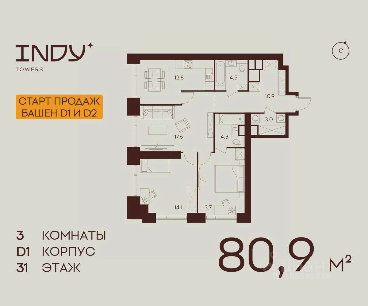 Продается просторная 3-комнатная квартира на 31 этаже жилого комплекса Indy Towers. Срок сдачи: 3 кв. 2029 г.