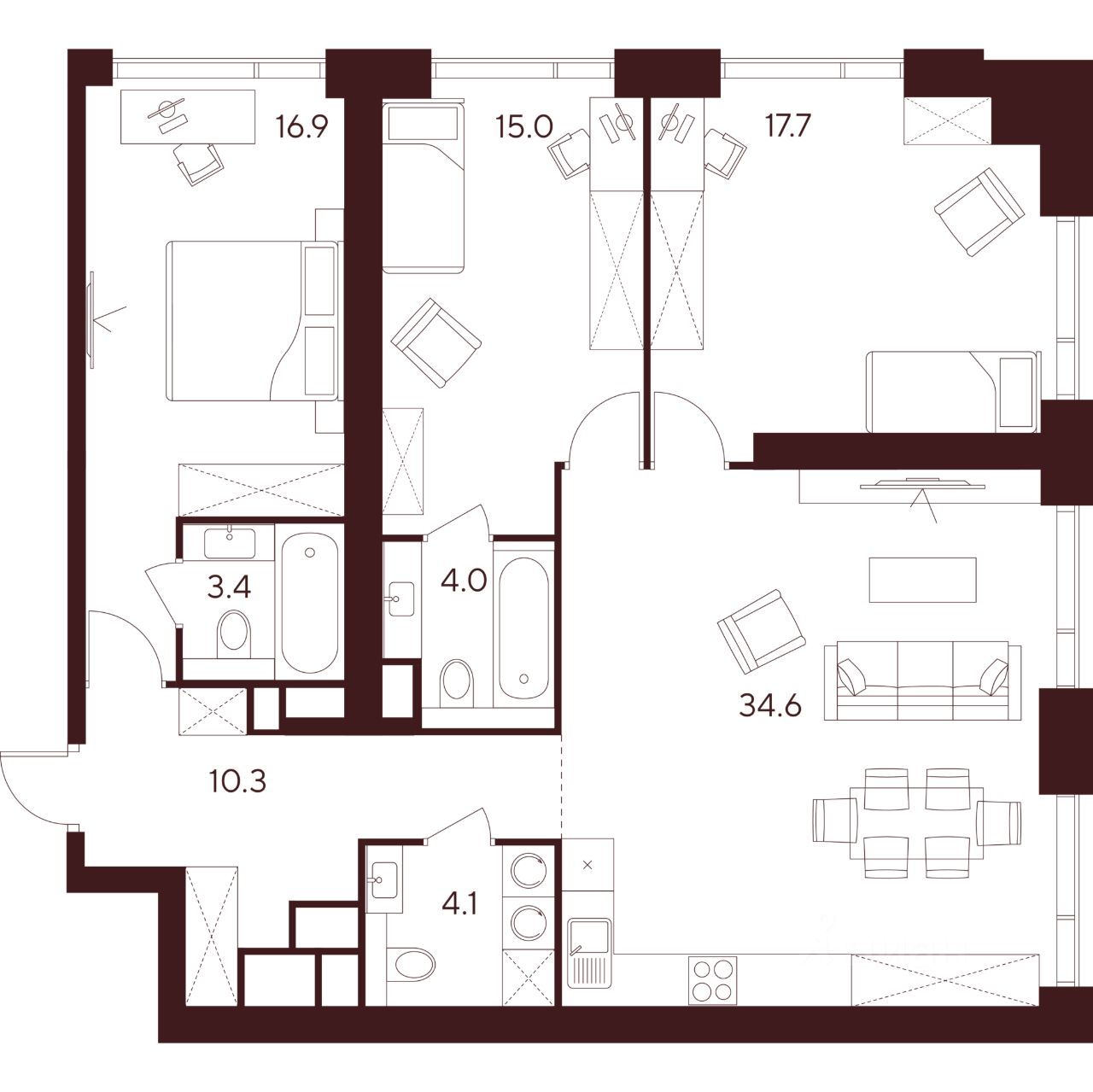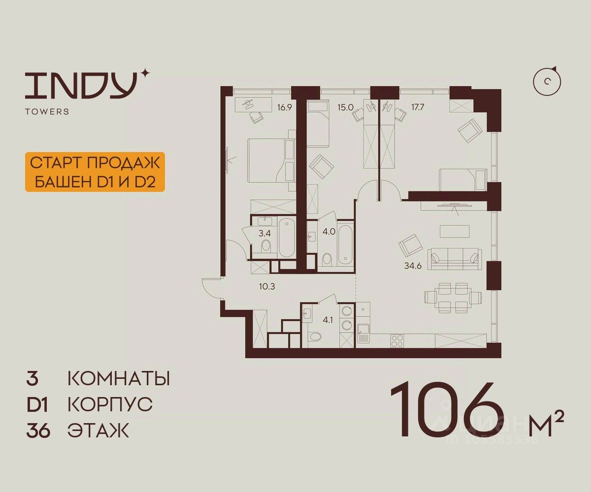 Продается просторная 3-комнатная квартира на 36 этаже жилого комплекса Indy Towers. Срок сдачи: 3 кв. 2029 г.