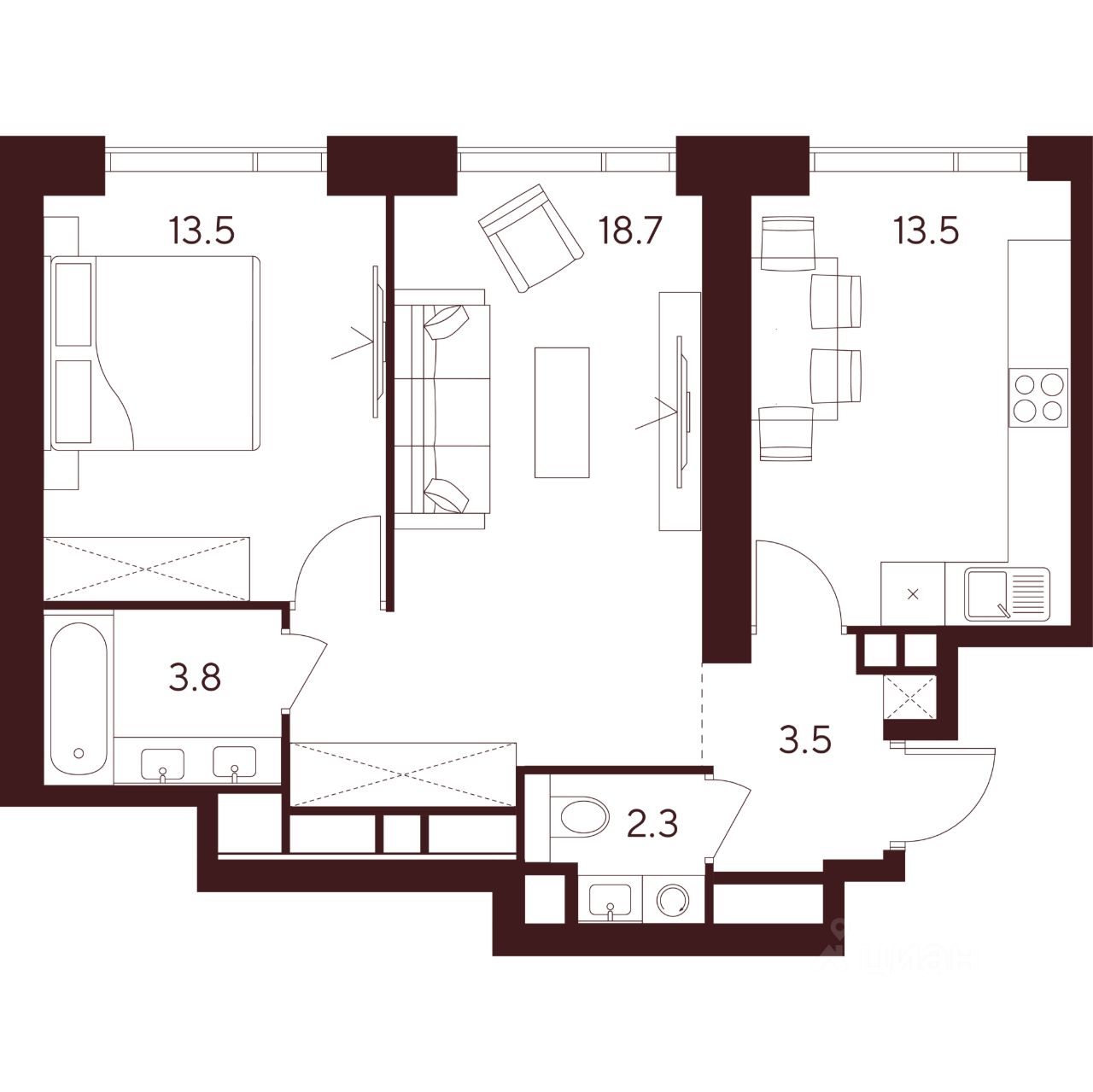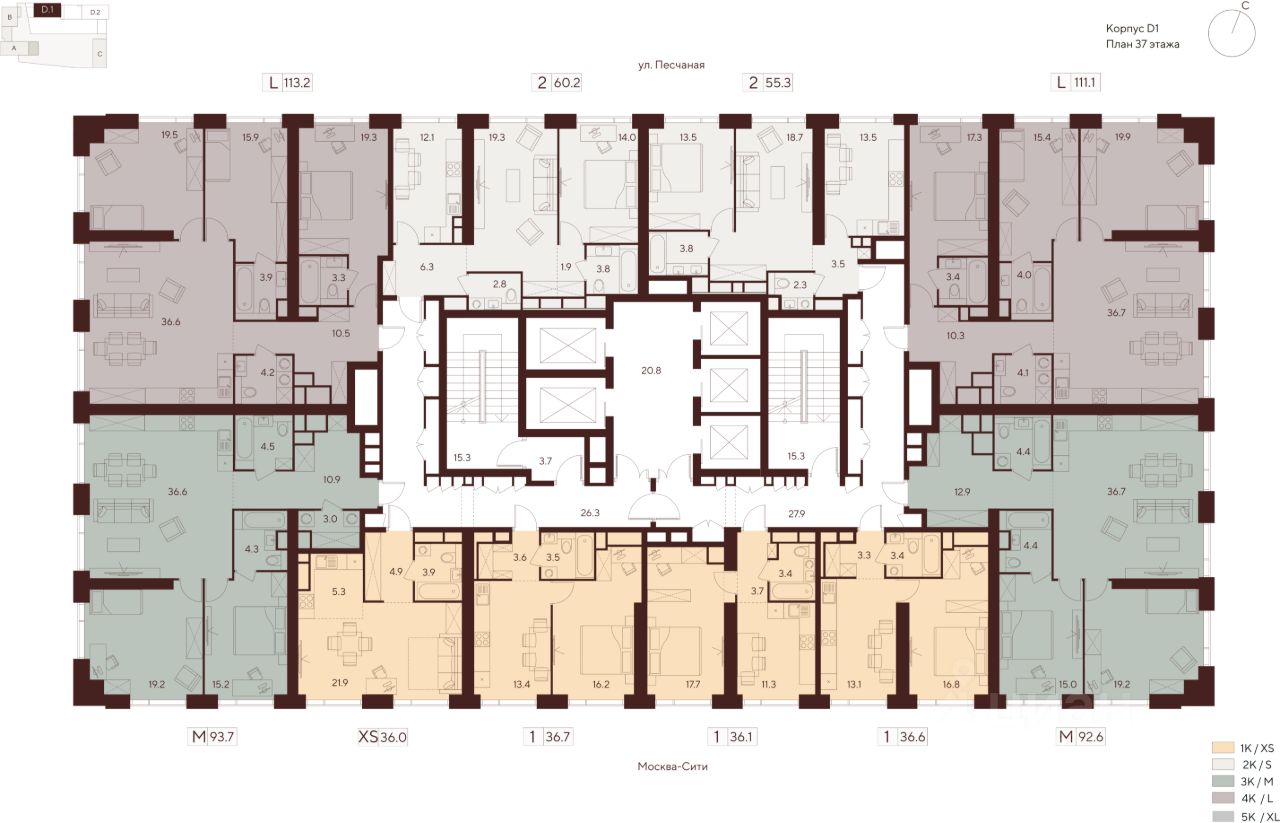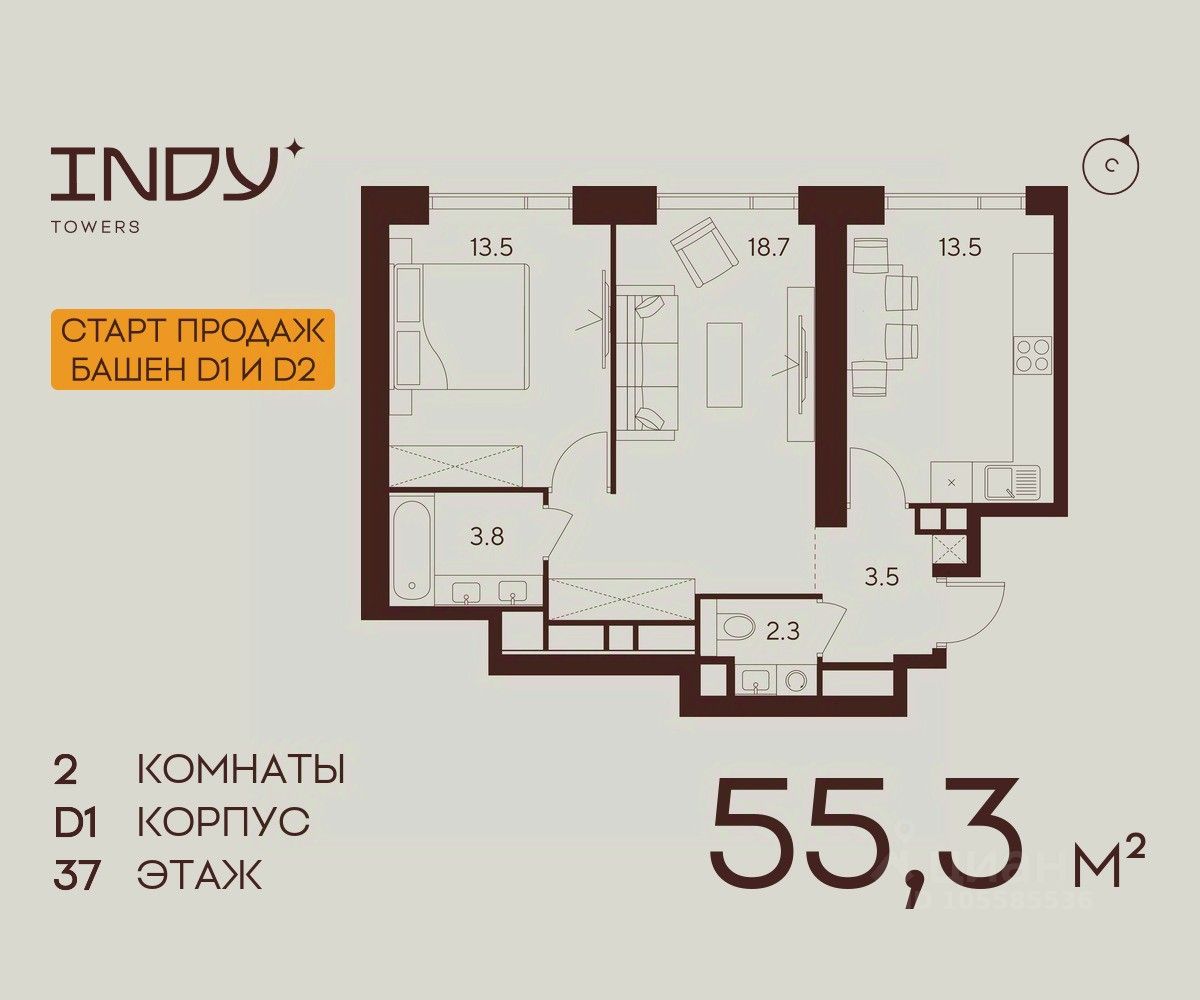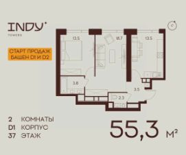 Продается 2-комнатная квартира на 37 этаже жилого комплекса Indy Towers. Срок сдачи: 3 кв. 2029 г.